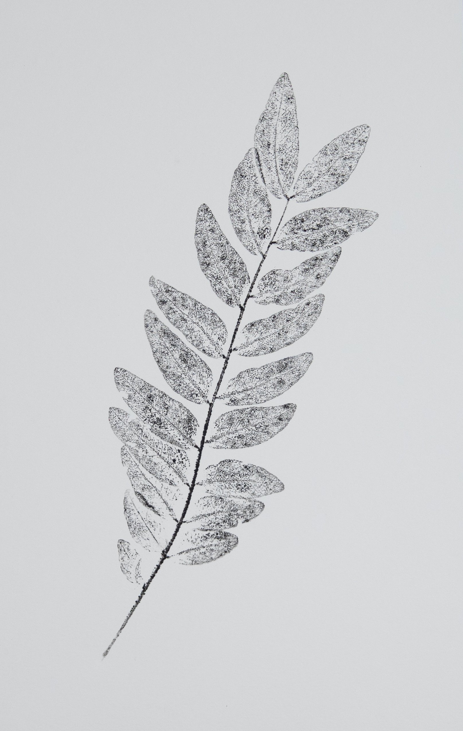 “Honey Locust Mono V” is a nature art print featuring a single honey locust branch rendered in black ink with fine, measured detail. The elongated form and evenly spaced leaflets give the piece a quiet, almost scientific clarity, as if the plant has been carefully observed and recorded rather than stylized. Subtle variation in tone and texture keeps the image organic, grounding it firmly in the natural world.